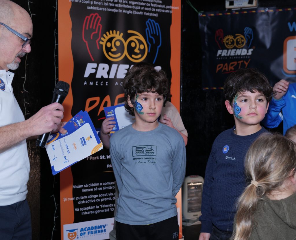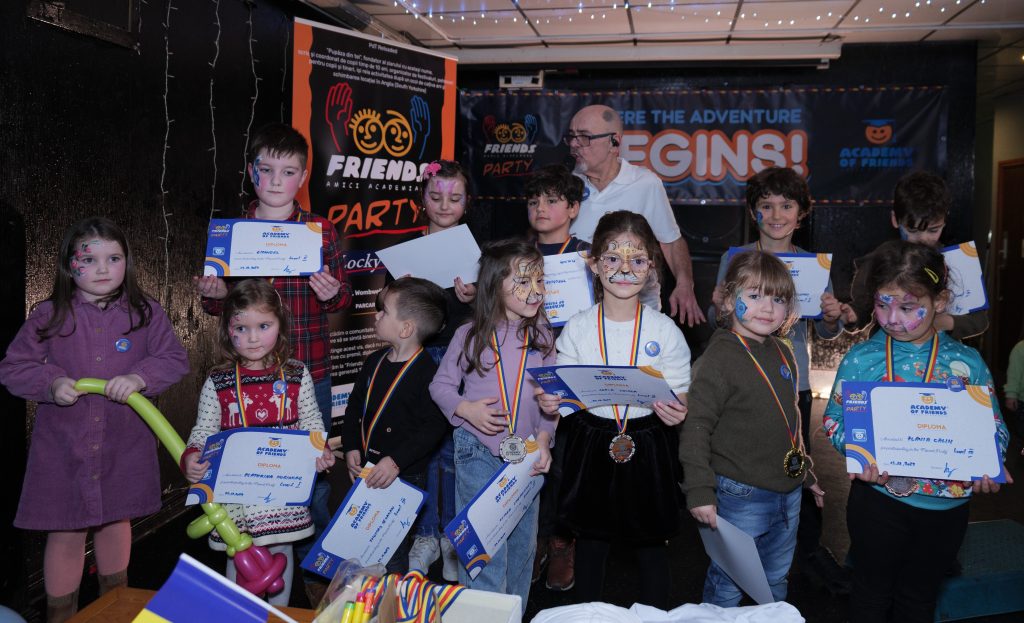 Aseară la Friends Party au fost concursuri, nu de matematică, nu de recitat, ci fețe de strâmbat, picioare de jucat, părinți și copii de dansat pe un pătrat de ziar, cu grijă să nu-l rupă. Au fost premii, diplome, medalii, unii au plecat acasă cu aurul, alții cu argintul ori bronzul, și îndrăznesc să sper că toți au plecat acasă cu inima plină că au petrecut o seară cu copiii într-un loc primitor, ca un alt acasă.